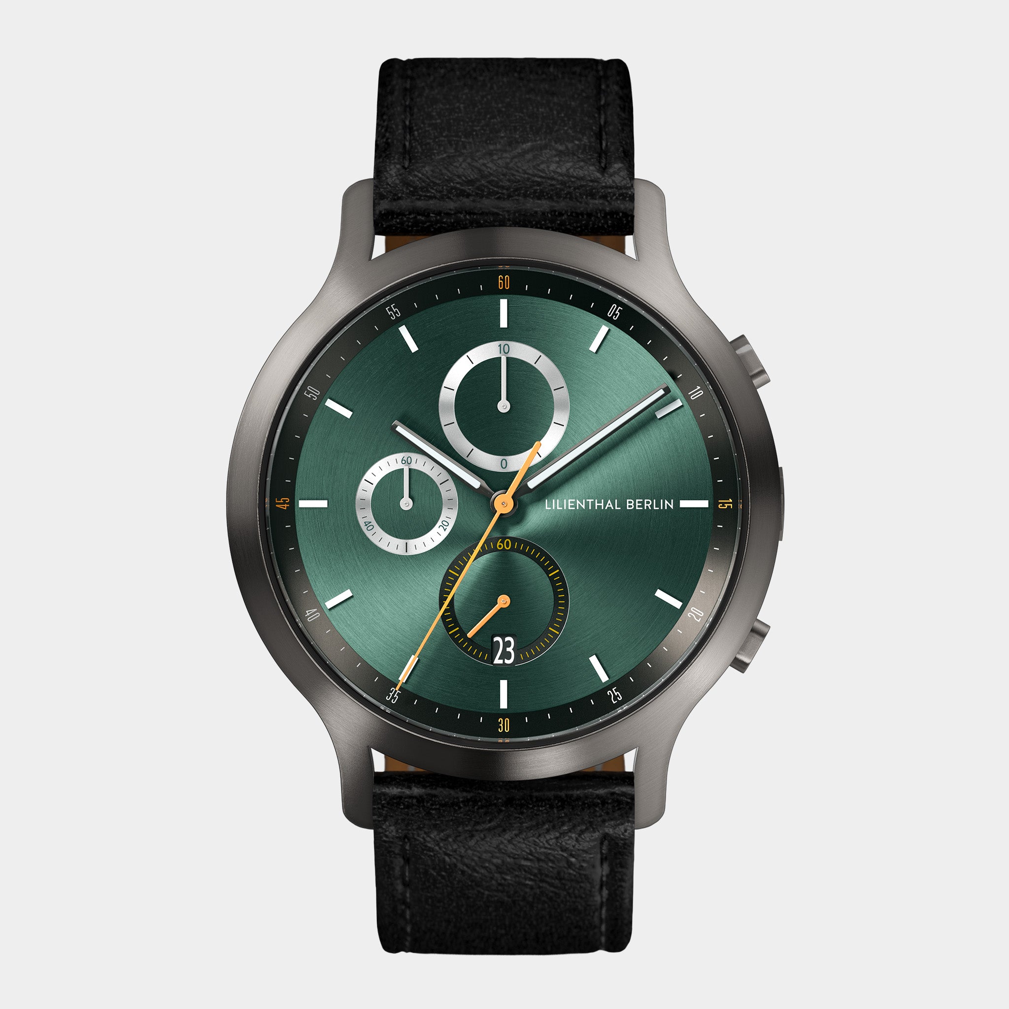 Découvrez notre collection de montres chronographes, où la fonctionnalité rencontre le design moderne. Une montre chronographe offre plus que l'heure : elle dispose d'une fonction de chronomètre intégrée, vous permettant de mesurer le temps écoulé avec précision et facilité. Conçues avec précision et souci du détail, ces montres chronographes allient des caractéristiques pratiques à une esthétique intemporelle. Chaque chronographe inclut des sous-cadrans clairement disposés pour afficher les secondes, les minutes et les mesures précises du chronomètre. Des matériaux de haute qualité, tels que des boîtiers en acier inoxydable 316L et un verre minéral durci au saphir, garantissent durabilité et élégance raffinée. Les aiguilles et marqueurs lumineux sur chaque montre chronographe améliorent la lisibilité, même en faible luminosité. Que ce soit pour un usage quotidien ou pour des occasions spéciales, les chronographes de Lilienthal Berlin sont conçus pour la polyvalence. Avec des bracelets interchangeables en cuir, acier inoxydable et alternatives véganes, vous pouvez personnaliser votre montre chronographe pour correspondre à votre style personnel. Explorez la collection de montres chronographes et découvrez le mélange parfait de précision, style et fonctionnalité. Trouvez un chronographe qui reflète votre individualité et résiste à l'épreuve du temps.