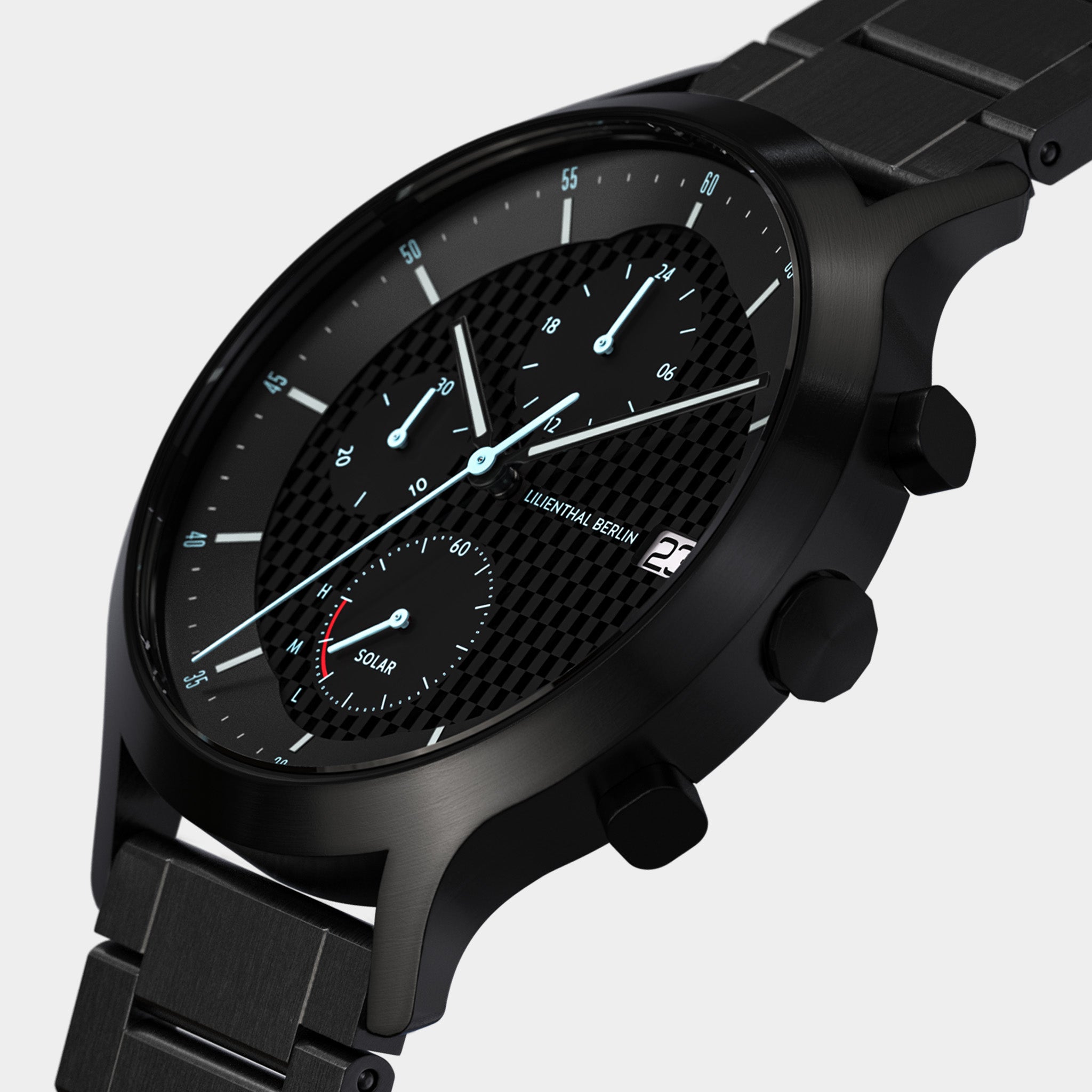 Discover our collection of chronograph watches, where functionality meets modern design. A chronograph watch offers more than just the time: it features a built-in stopwatch function, allowing you to measure elapsed time accurately with ease. Designed with precision and attention to detail, these chronograph watches combine practical features with timeless aesthetics. Each chronograph includes clearly arranged subdials to display seconds, minutes, and precise stopwatch measurements. High-quality materials, such as 316L stainless steel cases and sapphire-hardened mineral glass, ensure durability and refined elegance. Luminous hands and markers on every chronograph watch enhance readability, even in low light. Whether for everyday wear or special occasions, Lilienthal Berlin’s chronographs are designed for versatility. With interchangeable straps in leather, stainless steel, and vegan alternatives, you can customize your chronograph watch to suit your personal style. Explore the collection of chronograph watches and discover the perfect blend of precision, style, and functionality. Find a chronograph that reflects your individuality and stands the test of time.