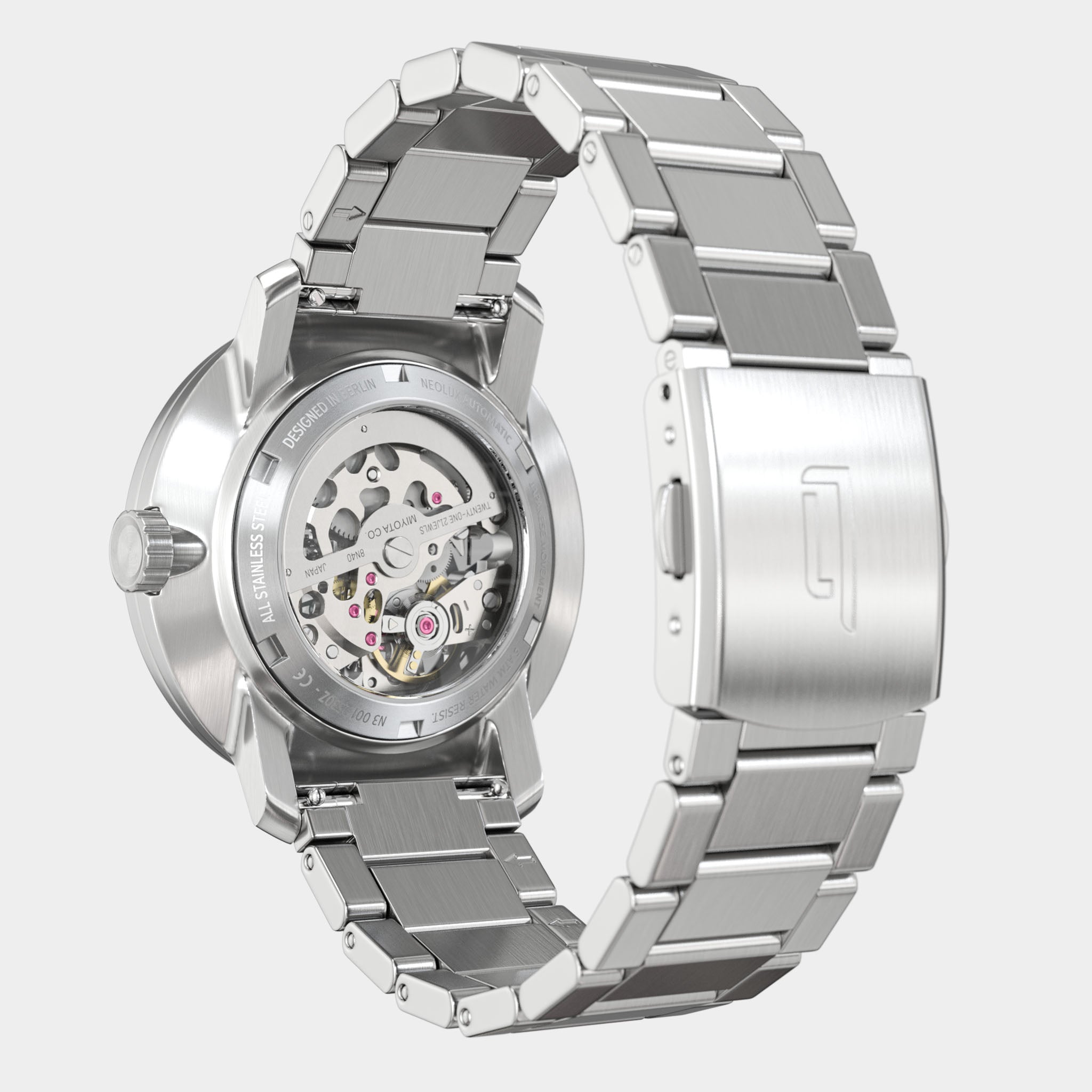 - Japanse Horlogemakerskunst: Er is het Miyota 8N40 uurwerk ingebouwd met 21 lagerstenen, een gangreserve tot 42 uur en een decentrale seconde.