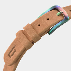 • De veganistische papieren leren band, gemaakt van cellulose, latex en kurk, is comfortabel, duurzaam en kan dankzij het quick-release mechanisme snel worden verwisseld.