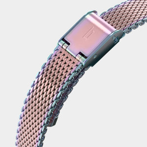 • Schitterende elegantie: De 30 mm kast heeft een gepersonaliseerd regenboogpatroon, terwijl de wijzerplaat een unieke glanseffect biedt. Een echte statement voor een kleurrijk leven!