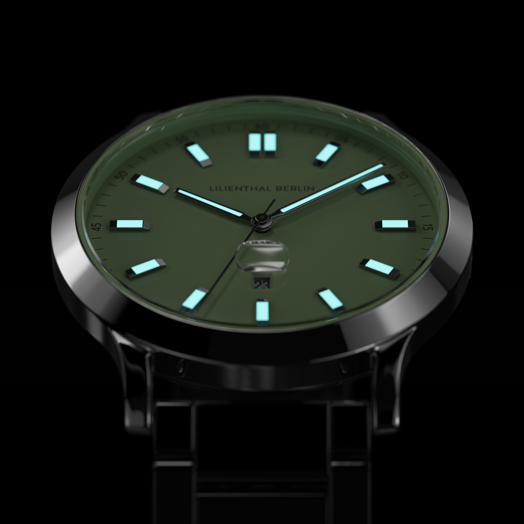 • Design saisissant avec fonctionnalité : Aiguilles et index appliqués avec Superluminova lumineux dans l'obscurité, ainsi qu'une loupe sur la date pour une lisibilité optimale. Le bracelet interchangeable pour un look personnalisable.
