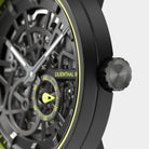 - La précision mise à nu : Le cadran squeletté révèle l'esthétique complexe du mouvement automatique.